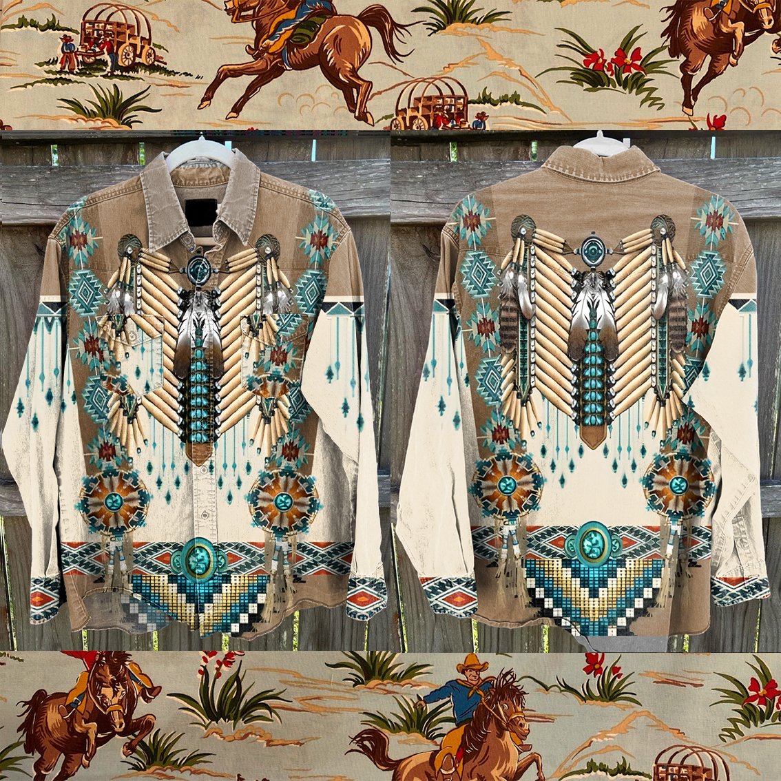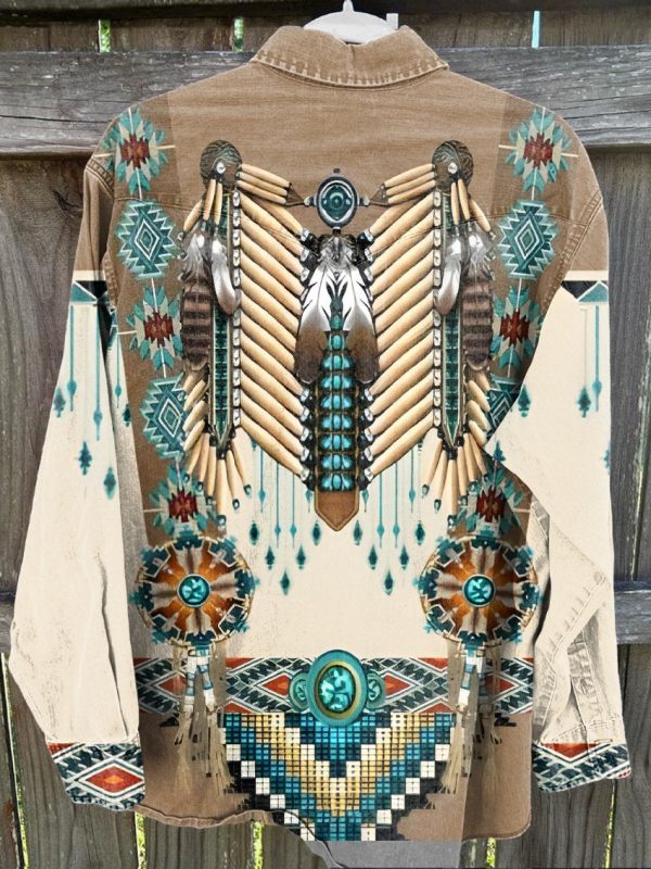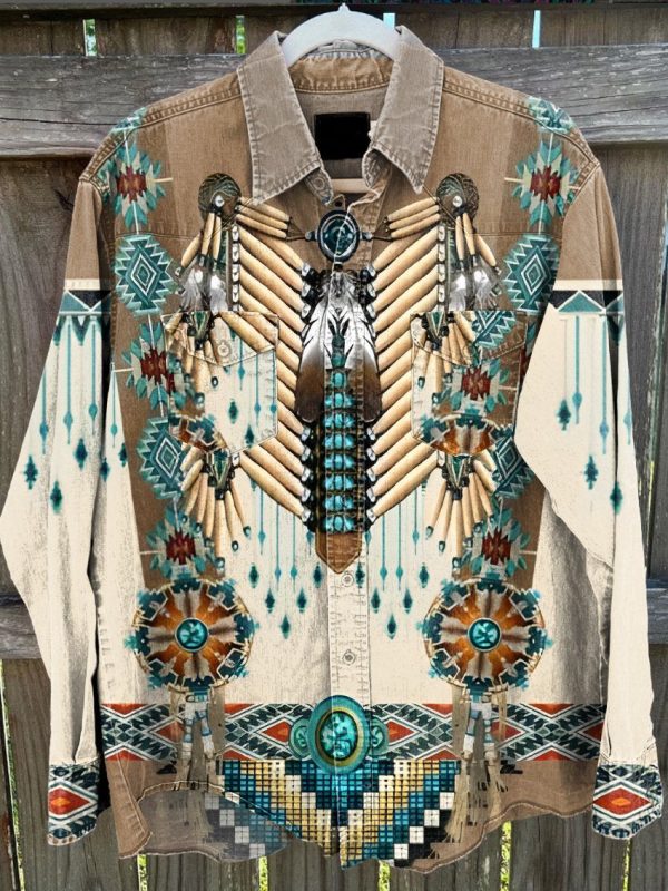 American Indian Western Shirt Vintage Stripe Print Casual Shirt