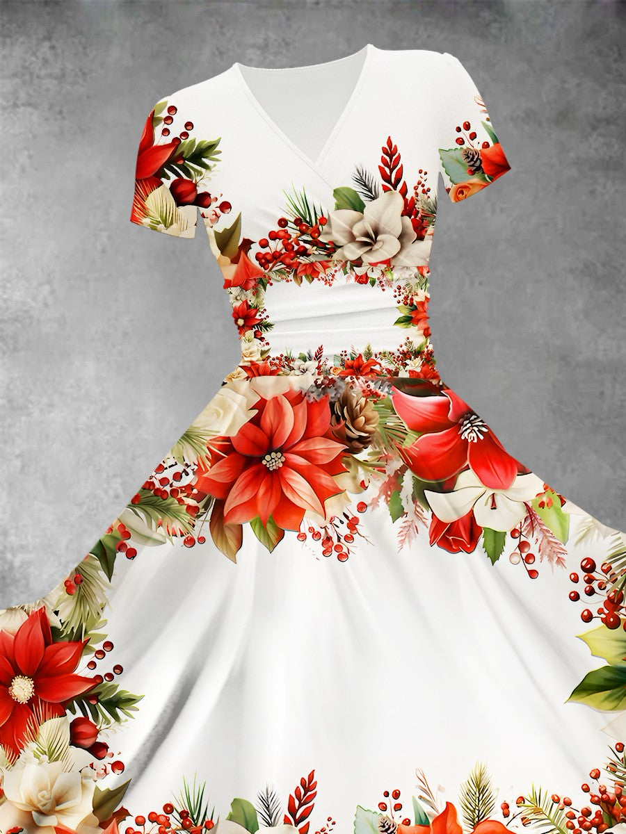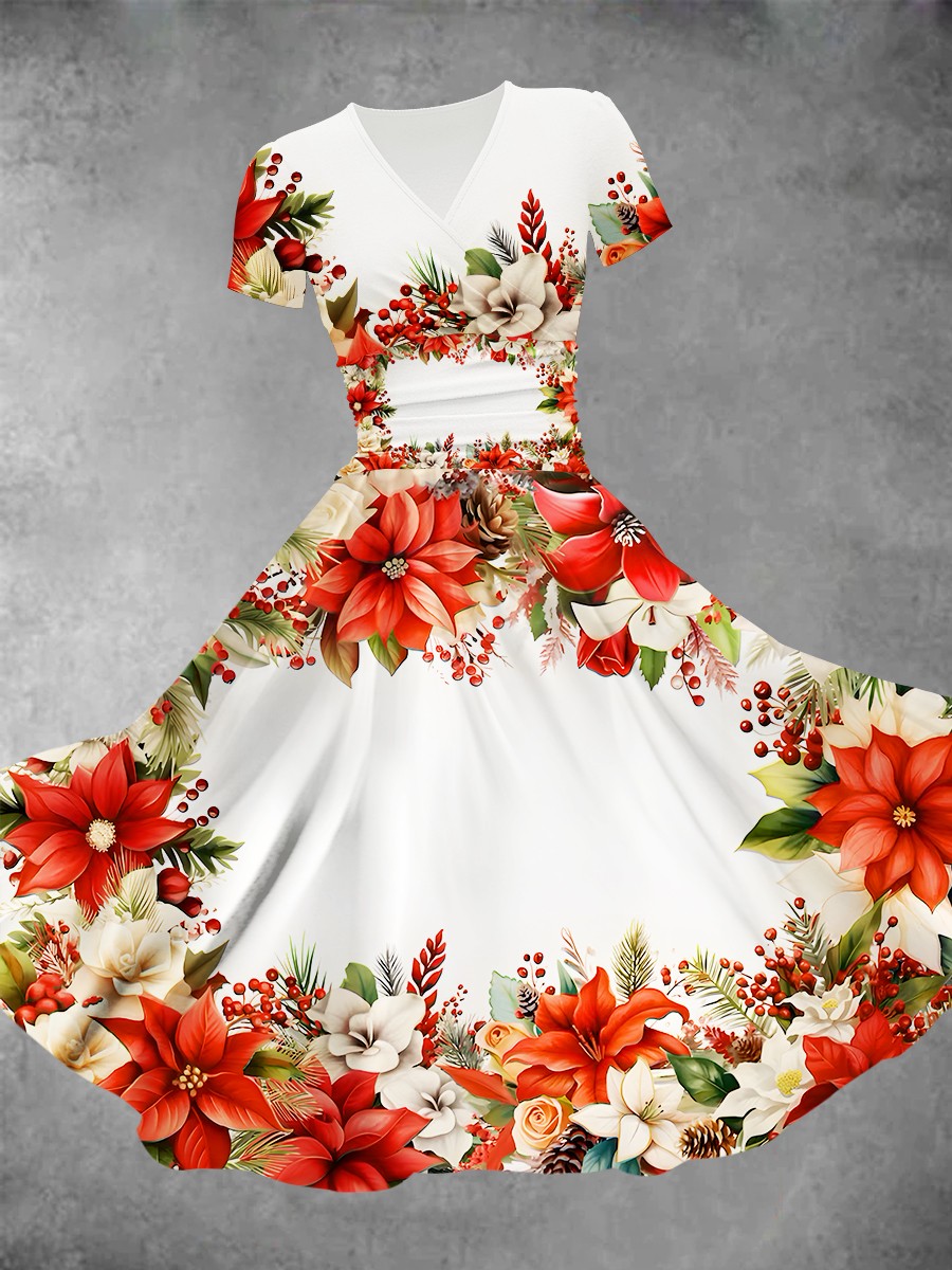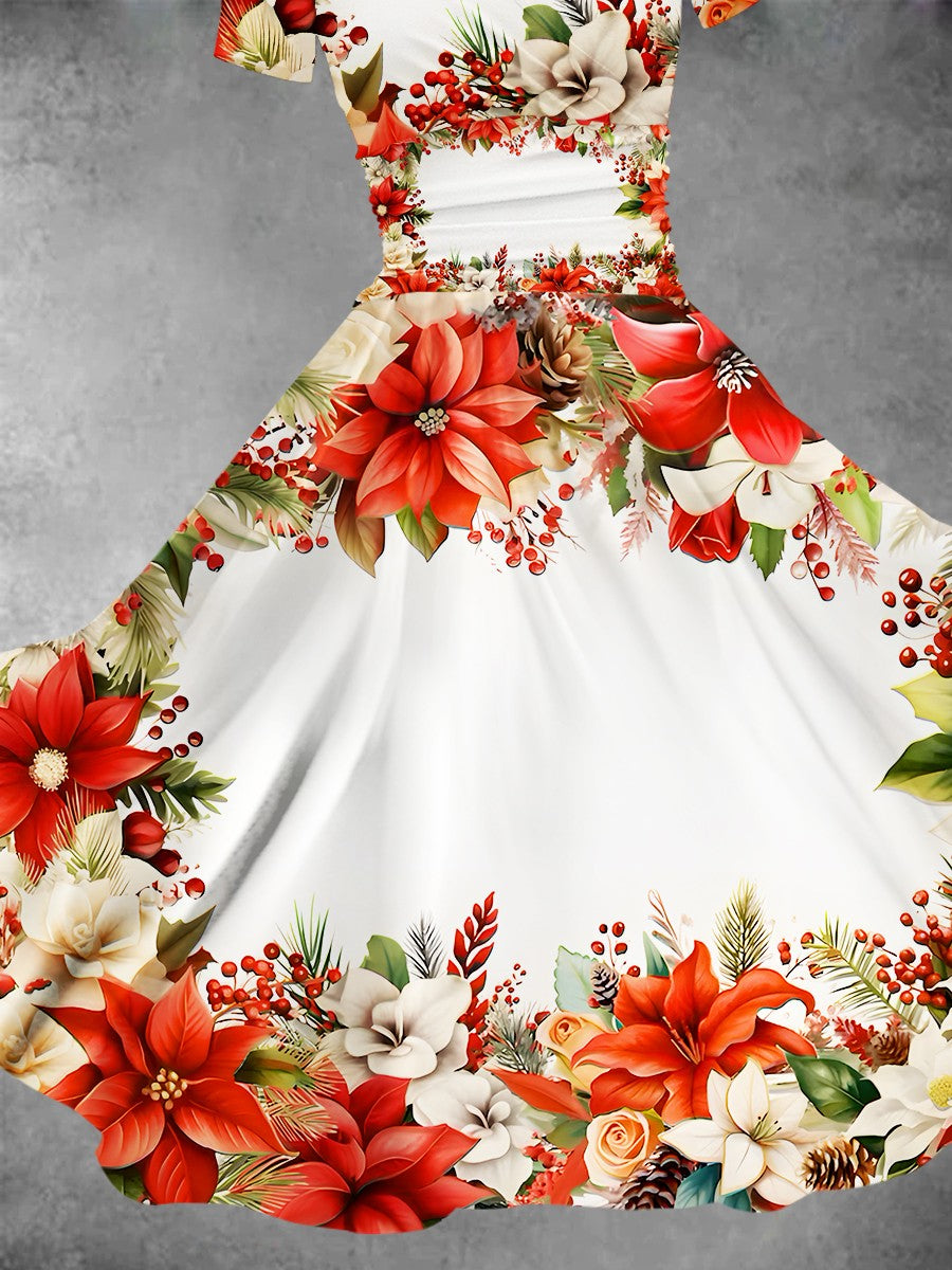 / Women’s Christmas Flower Decoration Christmas Design Maxi Dress